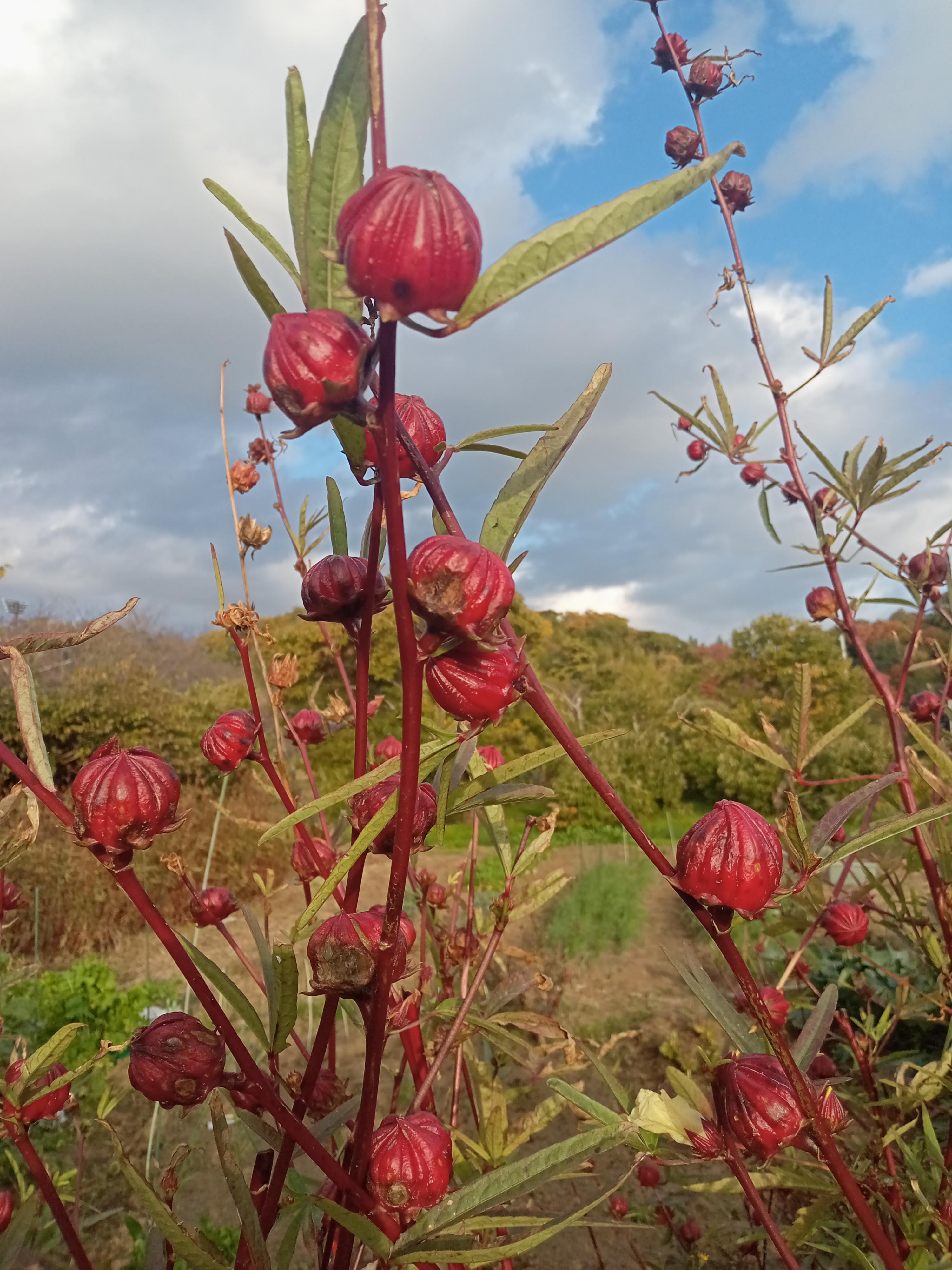 ローゼル(アオイ科フヨウ属) 別名:ハイビスカス・ローゼルだと思います ハイビスカスティーの原料になるようです